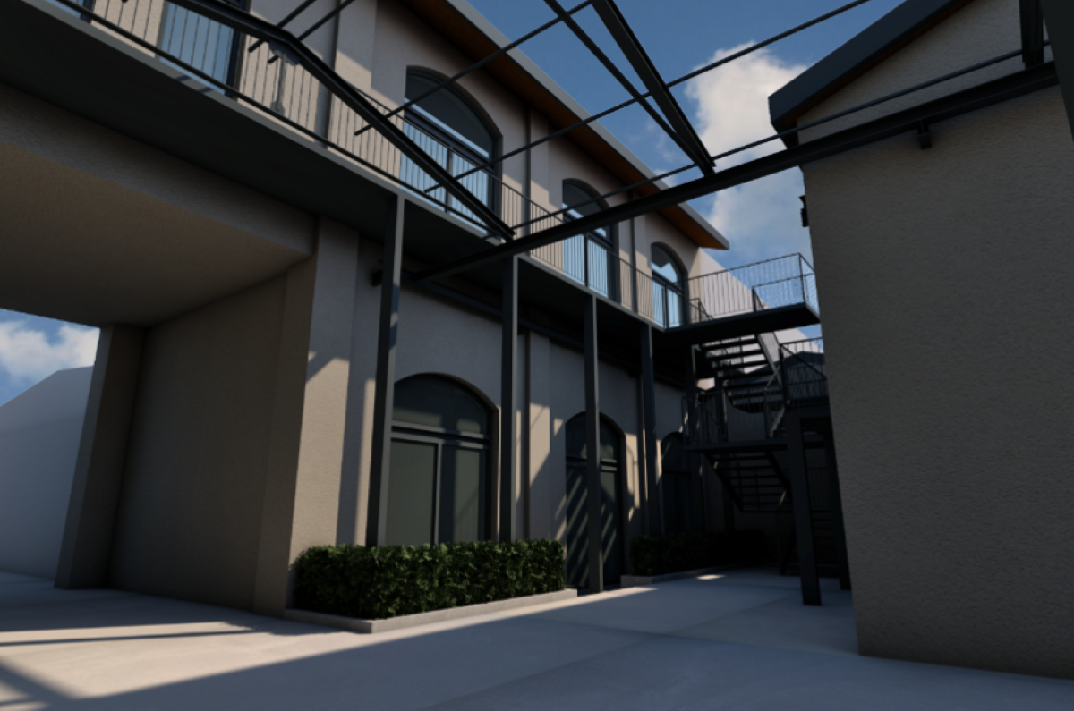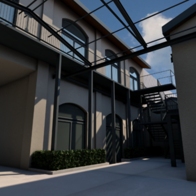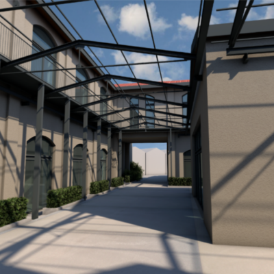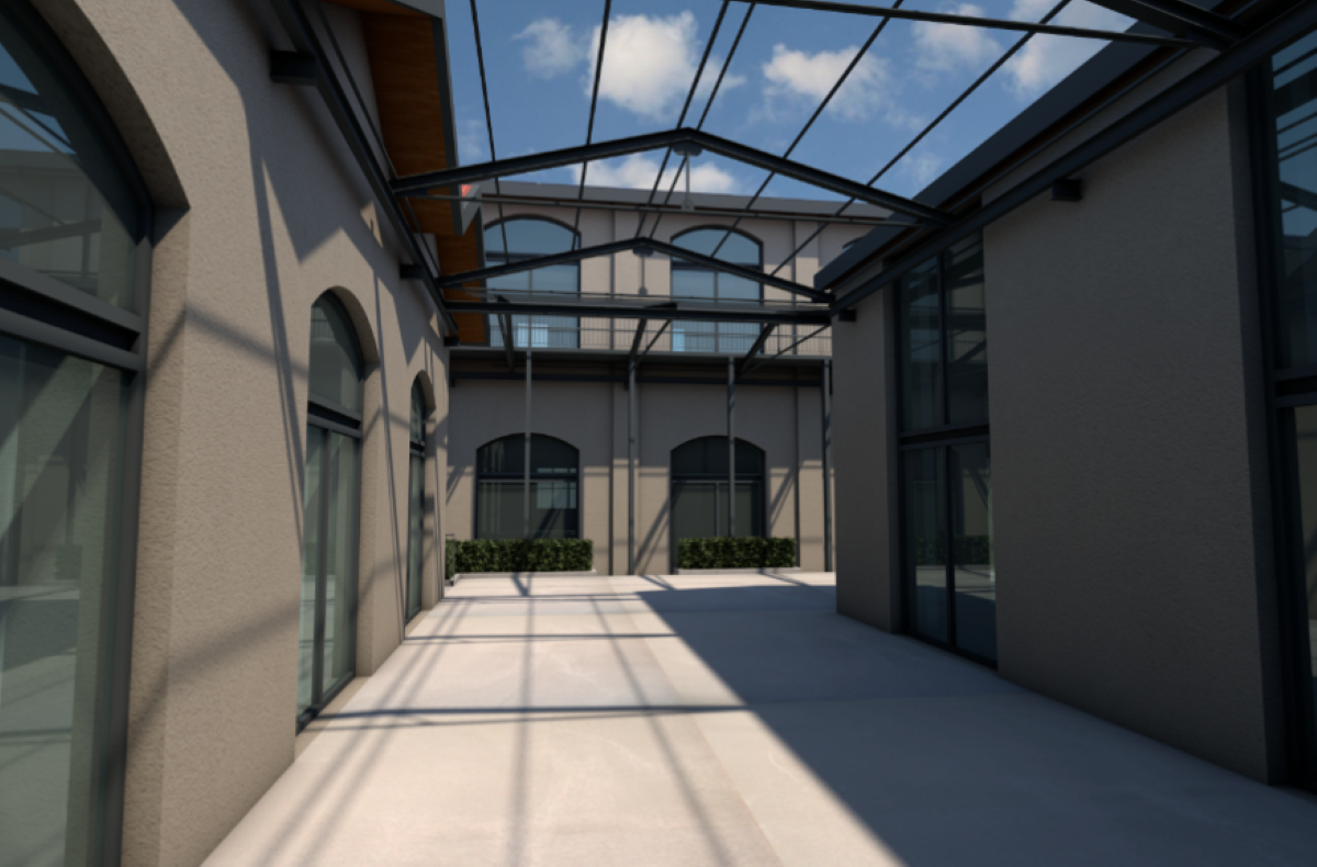 Il progetto di riconversione conserva i caratteri tipologici industriali del primo ‘900, mantenendo le strutture originali che possono essere conservate e realizzando interventi di rinnovamento e di adeguamento. L’immobile è costituito a piano terra da vani destinati a magazzini uniti tra loro da una tettoia, con una parte originariamente per uffici posta all’ingresso. Al primo piano si trovano altri vani a uso deposito e un terrazzo con affaccio rivolto verso l’entrata.