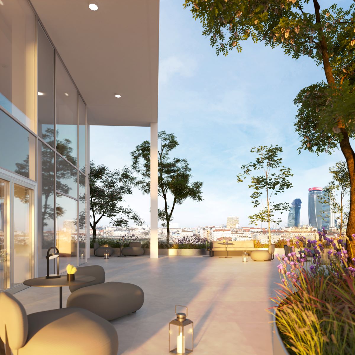 Saranno recuperati elementi architettonici della struttura originale che verrà mantenuta, alleggerita e ampliata grazie all’integrazione di una seconda maglia di pilastri. Questo permetterà di creare balconate e terrazze panoramiche, vere e proprie estensioni all’aperto degli uffici e spazi di relazione e di relax, per una superficie complessiva di circa 1.400 mq.