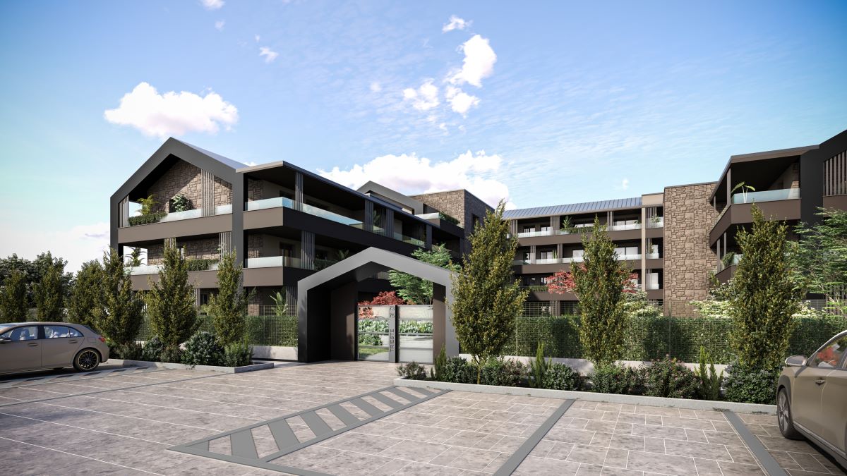 Colori e materiali definiscono il complesso. Le facciate dell’edificio sono caratterizzate dalla presenza di ampi balconi con schermature brise soleil. Le due facciate sul fronte di via Trieste e i corpi scala saranno rivestiti in pietra con profilo squadrato e tonalità color grigio terra.