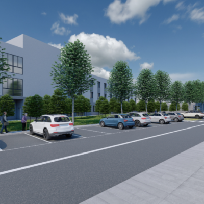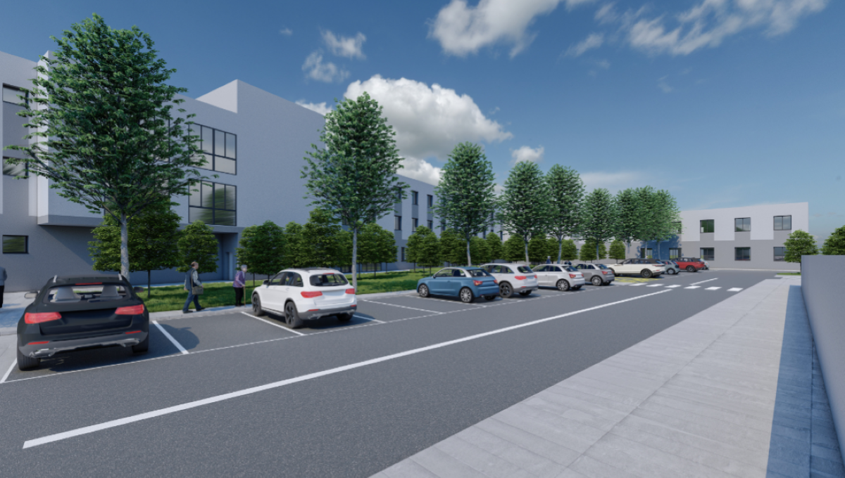 Le aree a verde e parcheggio in dotazione sono rispettivamente di 4,4 mila mq e di 3,4 mila mq.