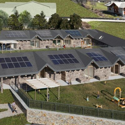 Le linee progettuali riprendono la tipologia costruttiva del territorio, valorizzando la vista panoramica verso il fondovalle e limitando l’impatto volumetrico.
