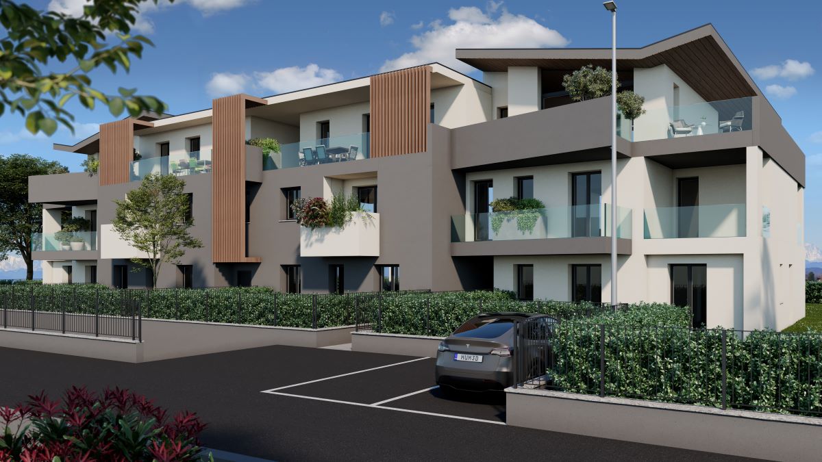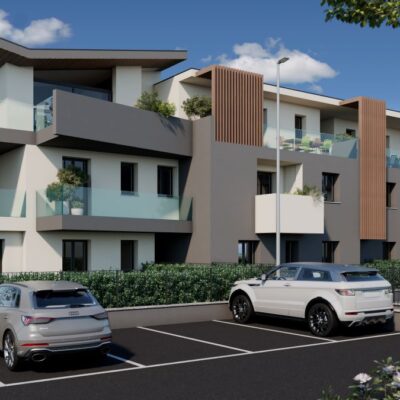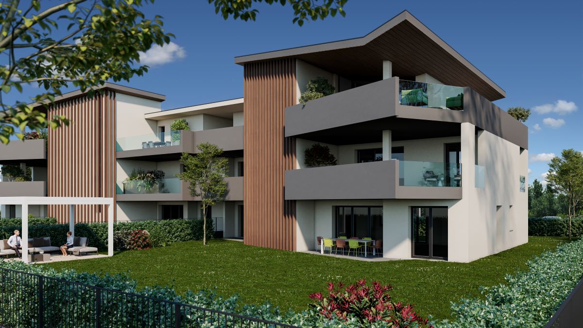 Internamente l’edificio è costituito da due corpi scala che collegano il piano interrato dove saranno posizionati i box auto con i tre piani fuori terra. Tutti gli alloggi, quadrilocali e trilocali, hanno ampie dimensioni e spazi esterni suddivisi tra giardini di pertinenza ai piani terra e terrazzi ai piani superiori.