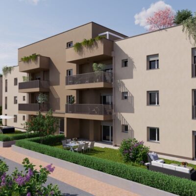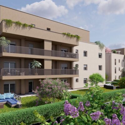 Le unità immobiliari saranno di ampie dimensioni (trilocali, quadrilocali e attici), con terrazzi ai piani superiori e giardini privati al piano terra. Il comparto residenziale sarà completato da garage e cantine disponibili in diverse metrature.
