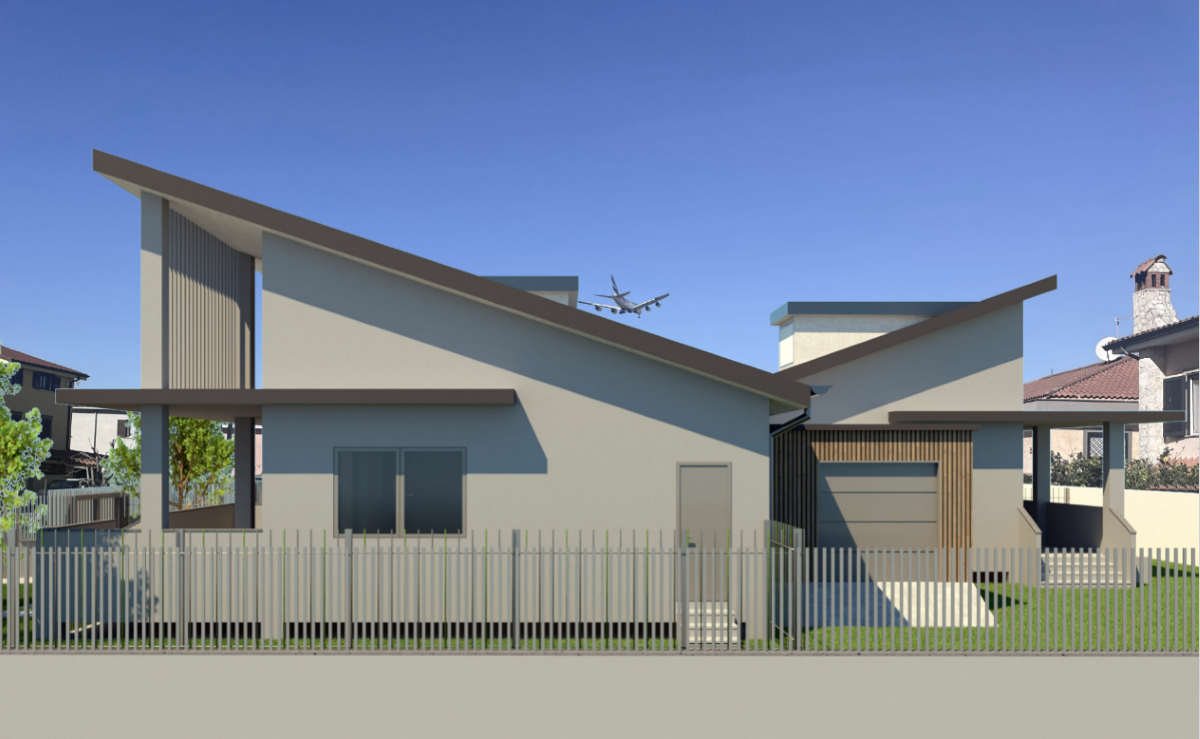 La volumetria della trifamiliare è distribuita tra un piano rialzato a destinazione residenziale e un piano primo destinato a soffitta; i due piani saranno collegati da scale interne.