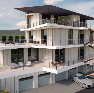 Il progetto dello studio Base 51 prevede la ristrutturazione edilizia con demolizione e ricostruzione di un edificio ad uso residenziale nel comune siciliano. Il cantiere di Pyramis Costruzioni per la realizzazione del complesso denominato Victoria Etnea è vicino alla copertura: le 7 unità abitative sono distribuite su 3 pft, con un piano garage e una slp complessiva di 1180 mq. L’intervento segue i criteri dell’architettura bioclimatica e sostenibile, utilizzando materiali riciclabili, ecocompatibili e a bassa manutenzione. La struttura portante antisismica è in acciaio, composta da macroelementi preassemblati e montati in opera, con cls per le fondazioni dei muri di contenimento della parte seminterrata. L’edificio è NZEB, alterna materiali opachi e vetrati che variano le ombreggiature, con facciate in fibrocemento, sistemi a secco e copertura in lamiera di zinco color grafite con pannelli fotovoltaici che producono circa 32.500 Kwh/anno.
