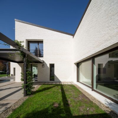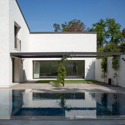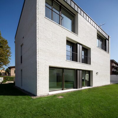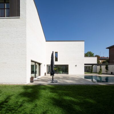 Il risultato è un organismo unitario e progressivo, capace di trasformare un lotto urbano complesso in un’architettura aperta, articolata e radicata nel paesaggio emiliano, dialogando con la memoria rurale senza rinunciare a un linguaggio contemporaneo.