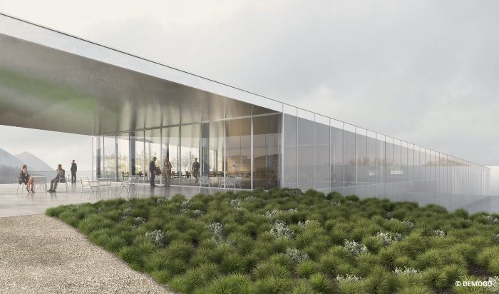 L’intervento è riferito alla realizzazione dello stabilimento produttivo Gibus e dell’headquarter collegato, in un’area di circa 90 mila mq sulle prime pendici dei Colli Euganei nel territorio padovano. Il progetto Sun Factory dello Studio di Architettura Demogo, vincitore del concorso di progettazione, richiama l’attività della committenza – la protezione dal sole e dalle intemperie – nella grande copertura con superficie obliqua che diventa tema unificante ed elemento caratterizzante nel paesaggio circostante. I circa 22 mila mq della Sun Factory ospitano showroom, auditorium, sale riunioni, uffici, stabilimento produttivo e ristorante aziendale, circondati da giardini pensili, terrazzamenti e coperture verdi. Il complesso sarà un corpo a L con volumi dalla geometria regolare e spazi interni che permettono di utilizzare la luce naturale, con il fronte sud ovest dell’area direzionale dotato di una facciata continua trasparente caratterizzata da lamelle schermanti.